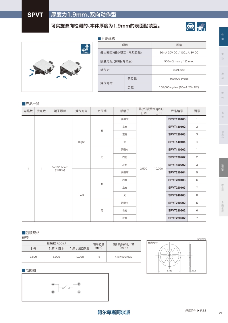 采購:SPVT系列——ALPS檢測開關