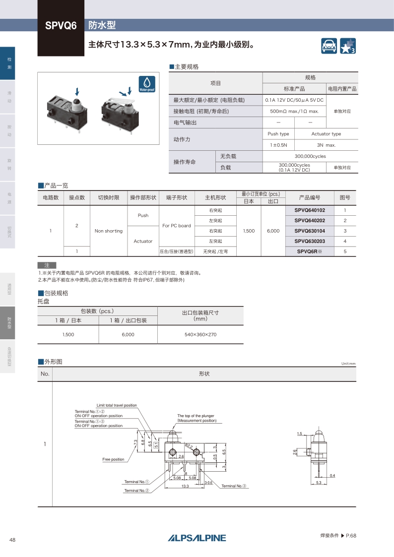 采購:SPVQ6系列——ALPS檢測開關