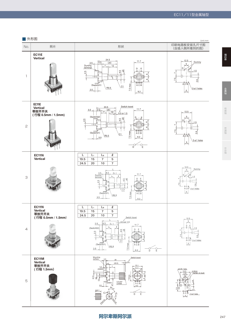 EC11E09244BS 照片 Vertical 平軸 20mm 18 9 0.5mm 11mm size