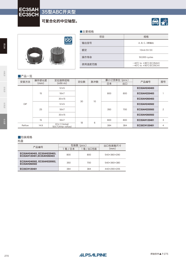 EC35AH/EC35CH系列——ALPS中空軸編碼器