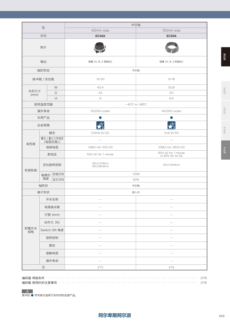 采購:EC40A系列——ALPS中空軸編碼器