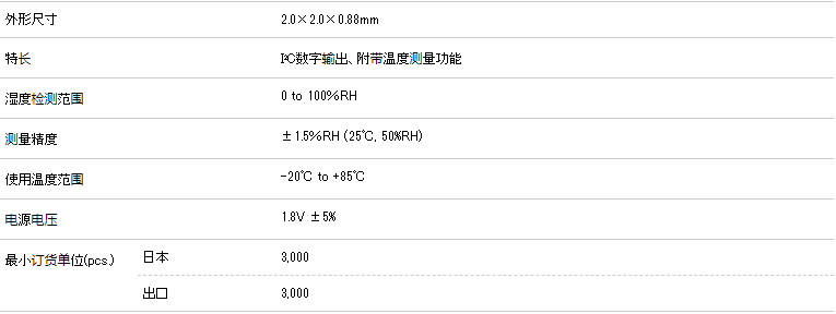 小型濕度傳感器(SMD)HSHCA系列小型封裝,測(cè)量精確,最大濕度測(cè)量范圍達(dá)到100%。型:表面貼裝 ? 安裝方法:表面貼裝。
