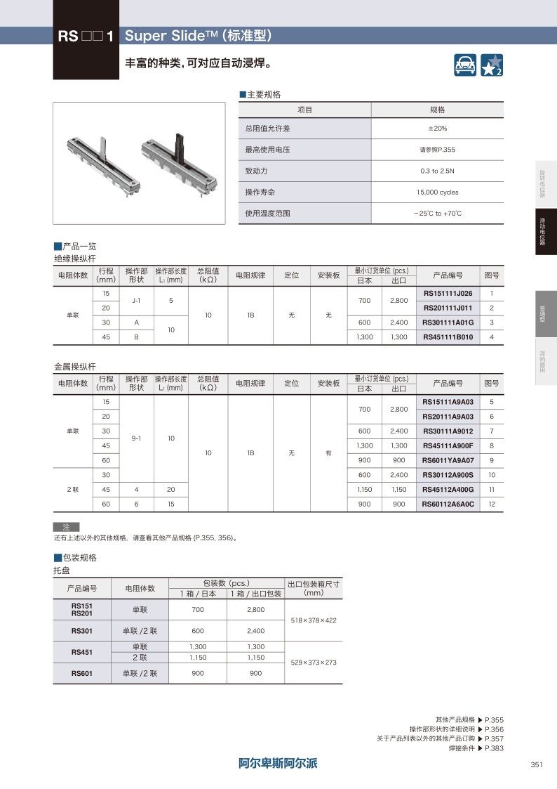 采購:RS601系列——ALPS滑動(dòng)電位器