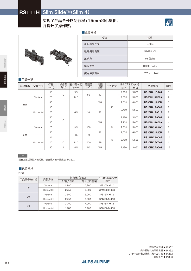 RS15H系列——ALPS滑動電位器