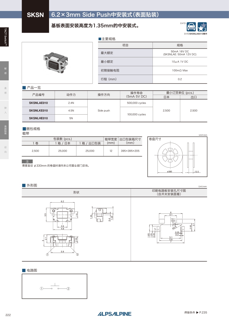 我司是ALPS授權代理商,ALPS系列產品均有在售,需要了解價格、包裝數,交期以及產品資料請咨詢在線客服!