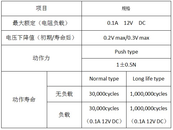●通過采用獨特的卡夾型兩面滑動接點結構,實現了更高的接點可靠性的同時,也實現了在微小電流領域內的最佳化可用性。●移動總量為3mm。