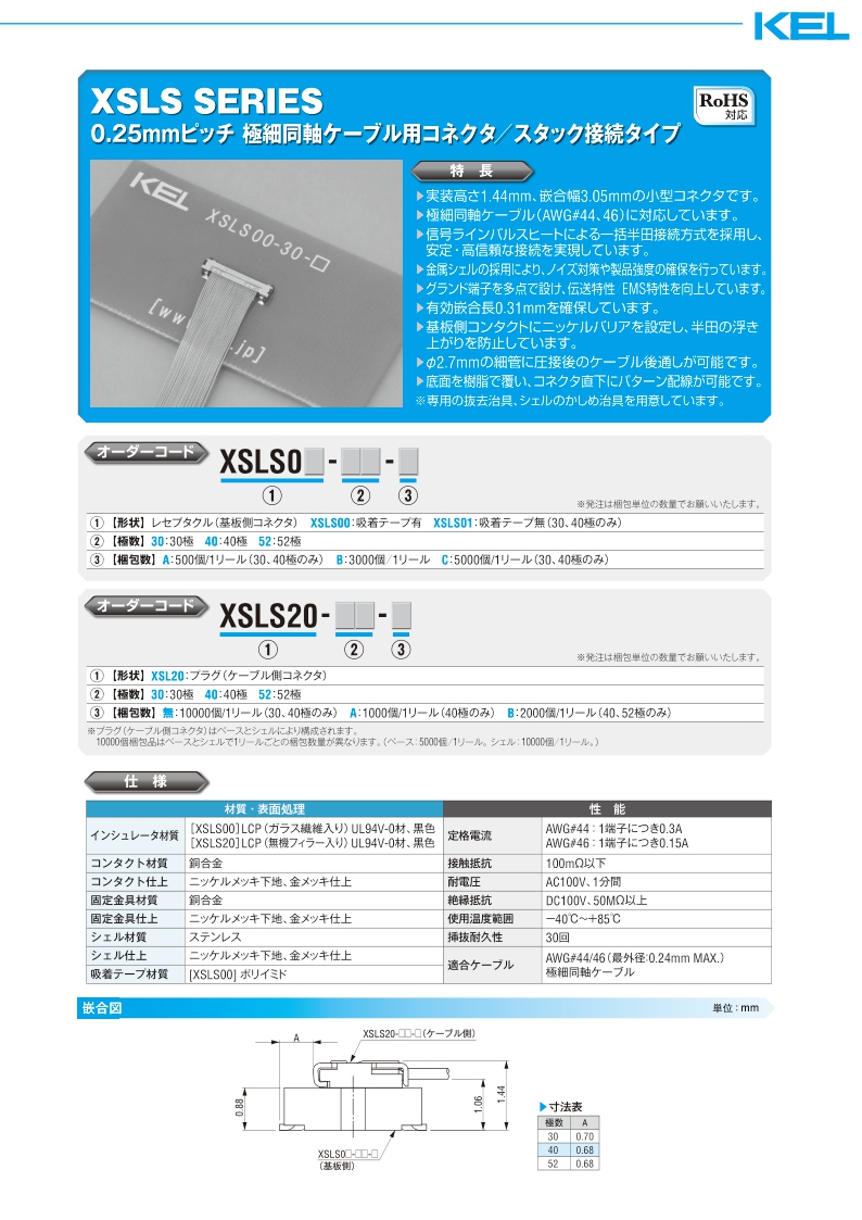 采購:XSLS系列——KEL極細同軸電纜連接器